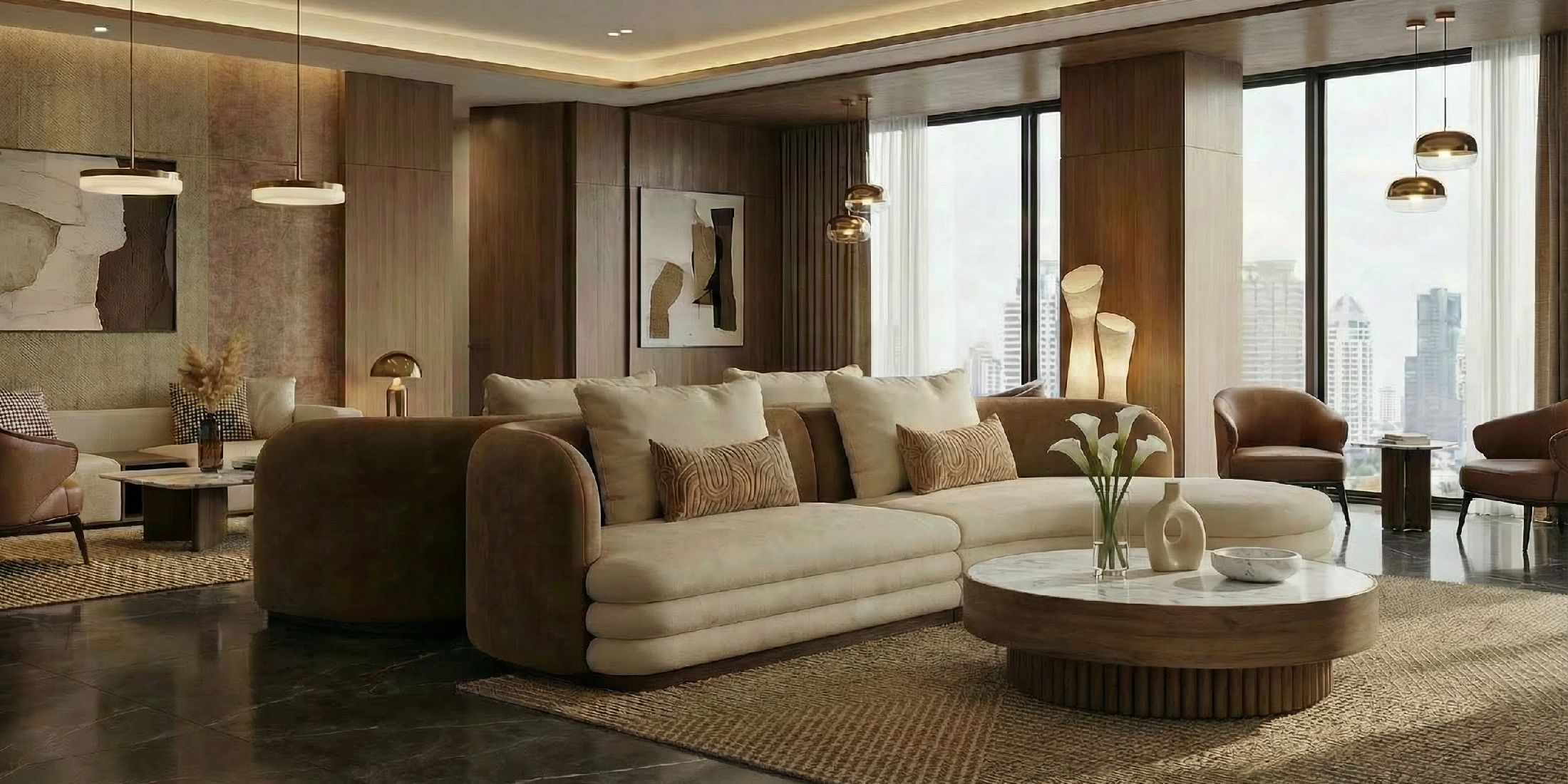 Explore custom stone options and timber finishes through Samples for full project specification.
