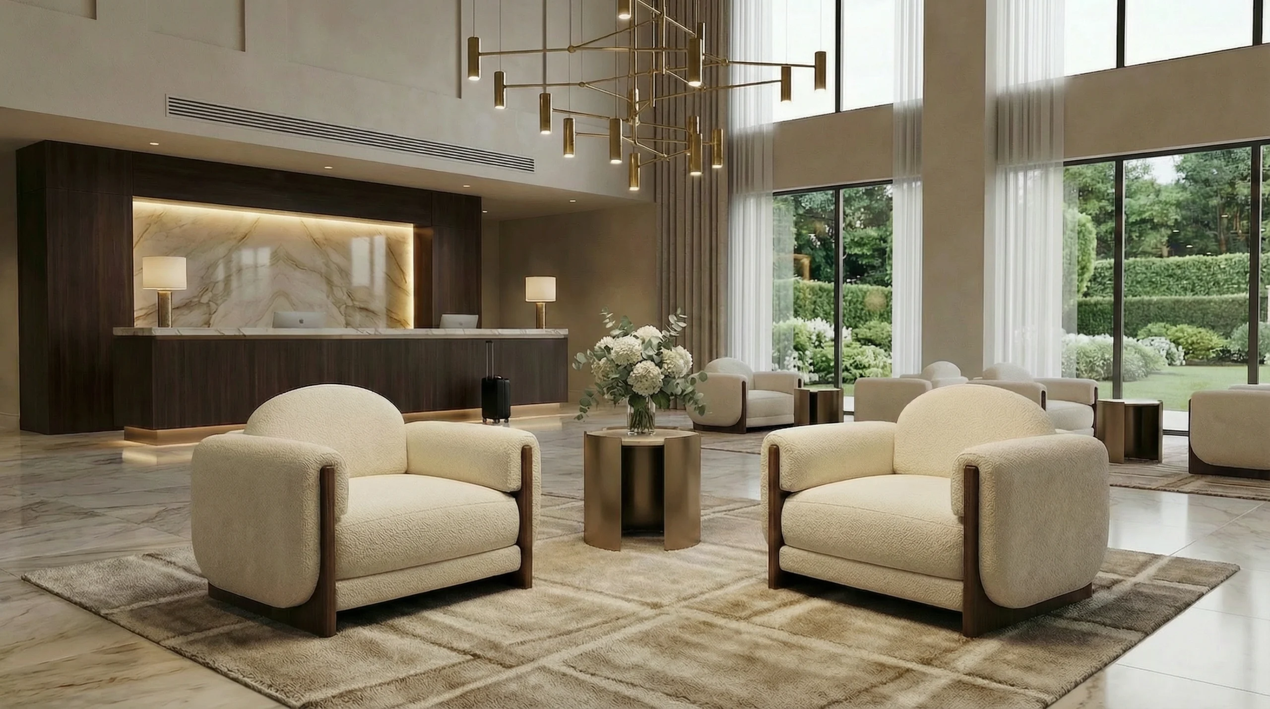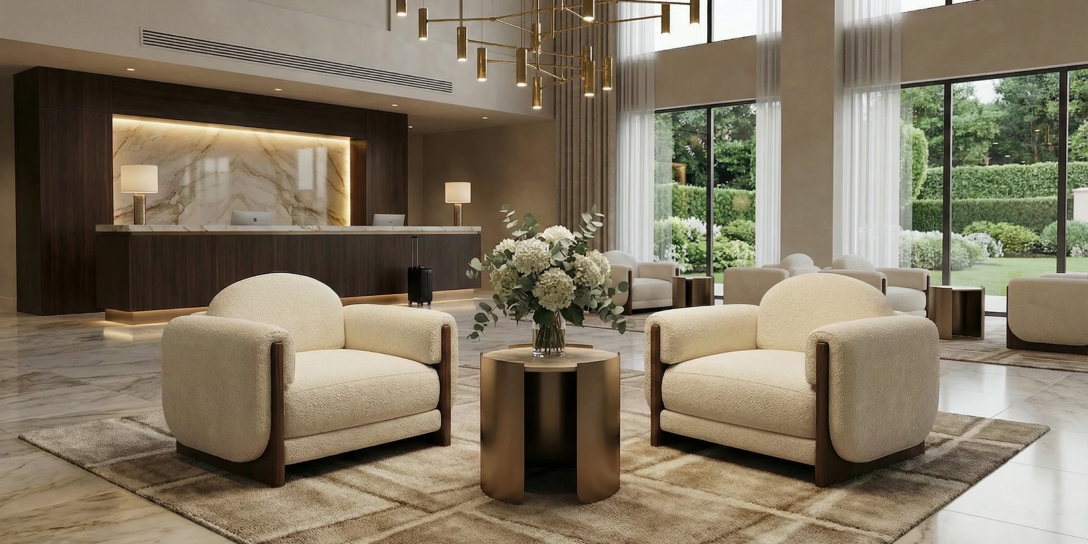 Pair with Celine Armchair to balance soft upholstery with sculpted stone, creating a cohesive seating vignette.