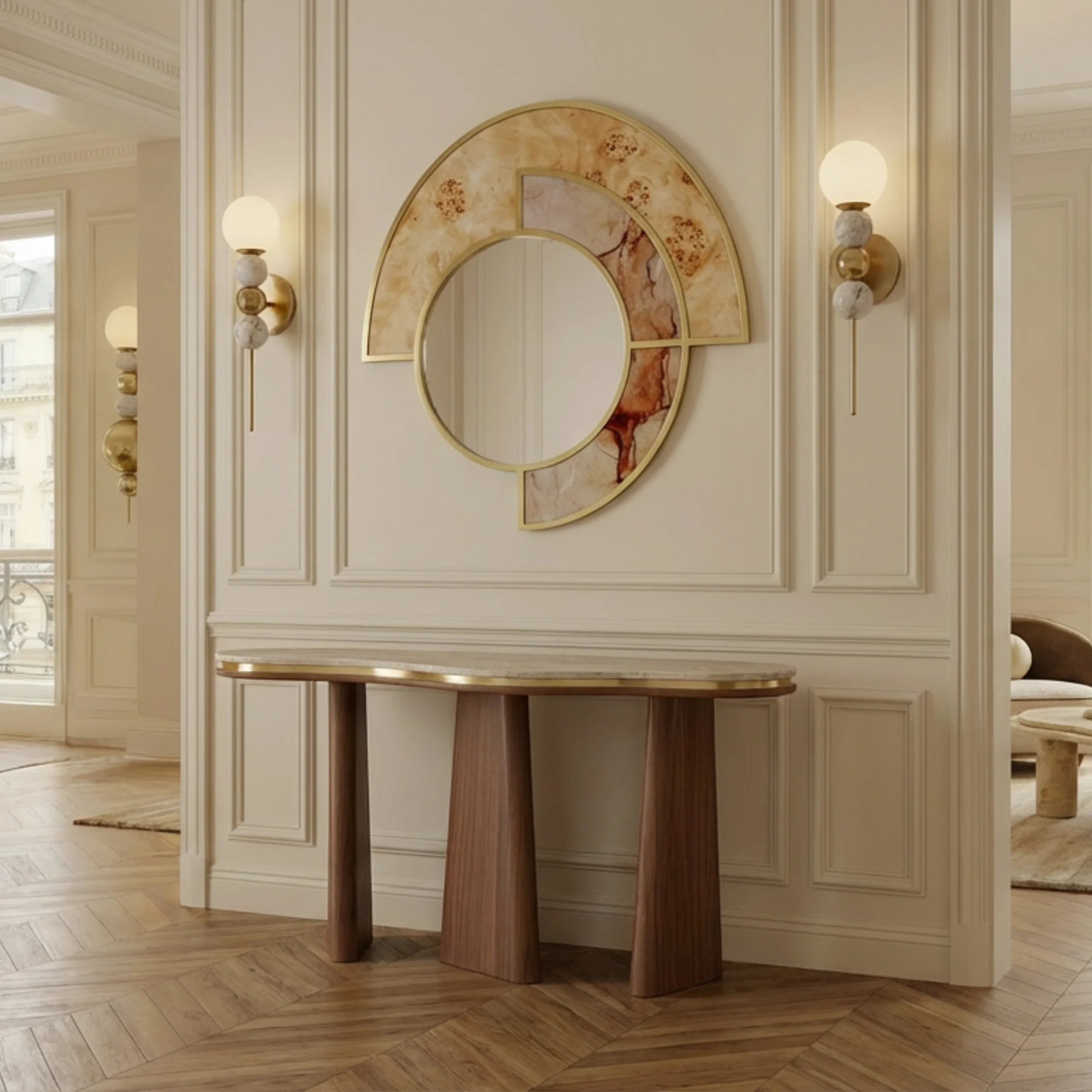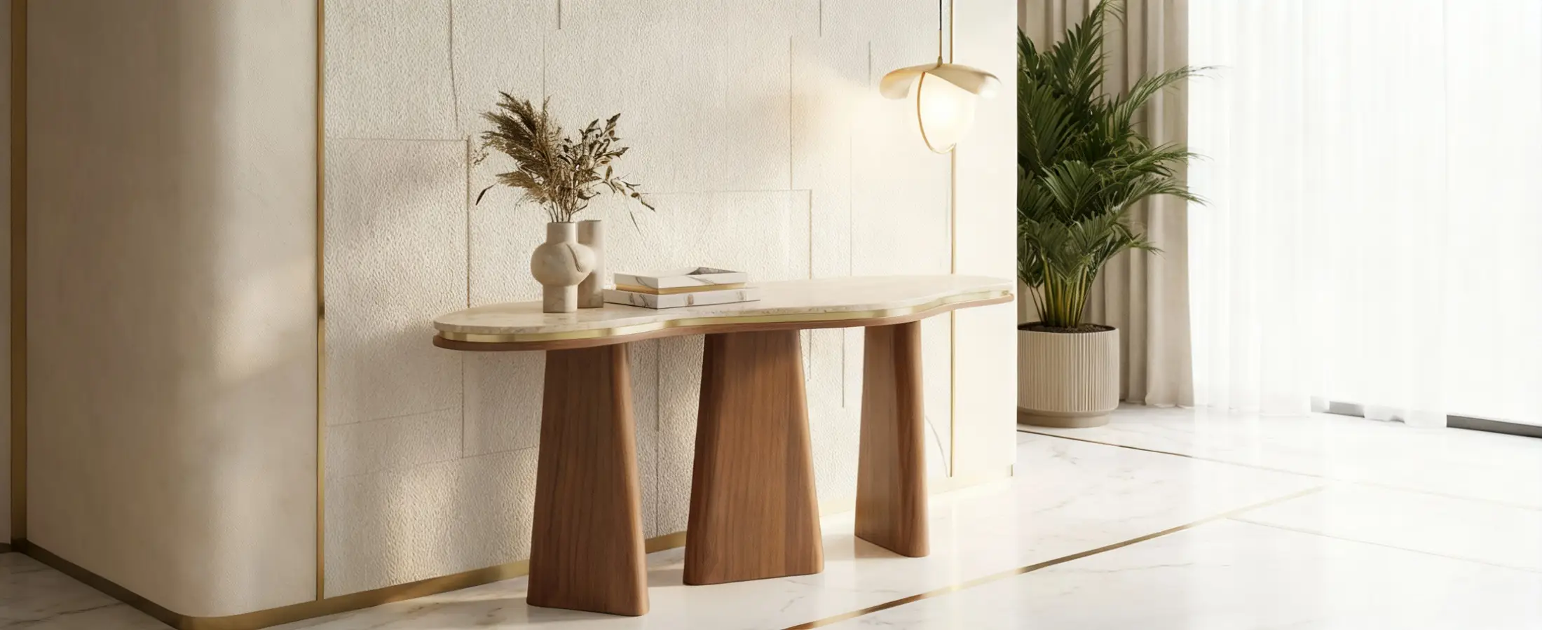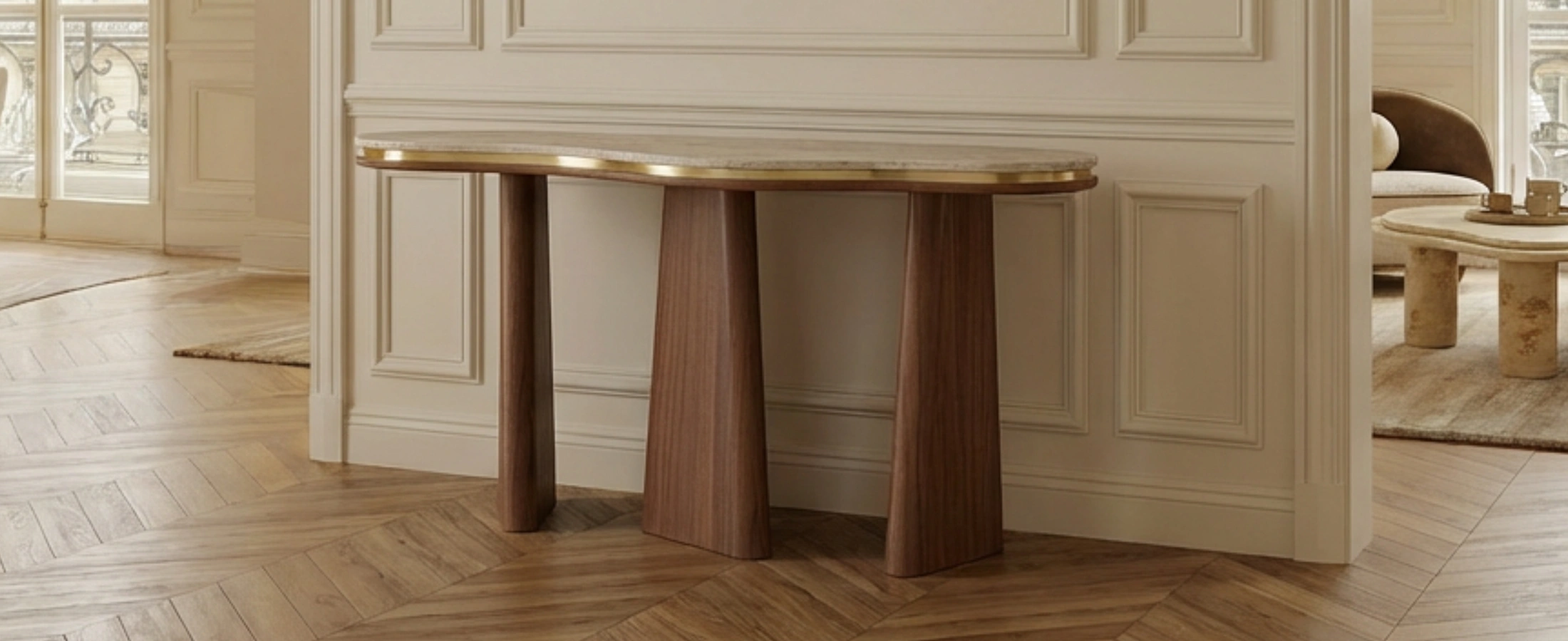 Organic curves meet sculptural craft — the Noria Console defines quiet luxury.