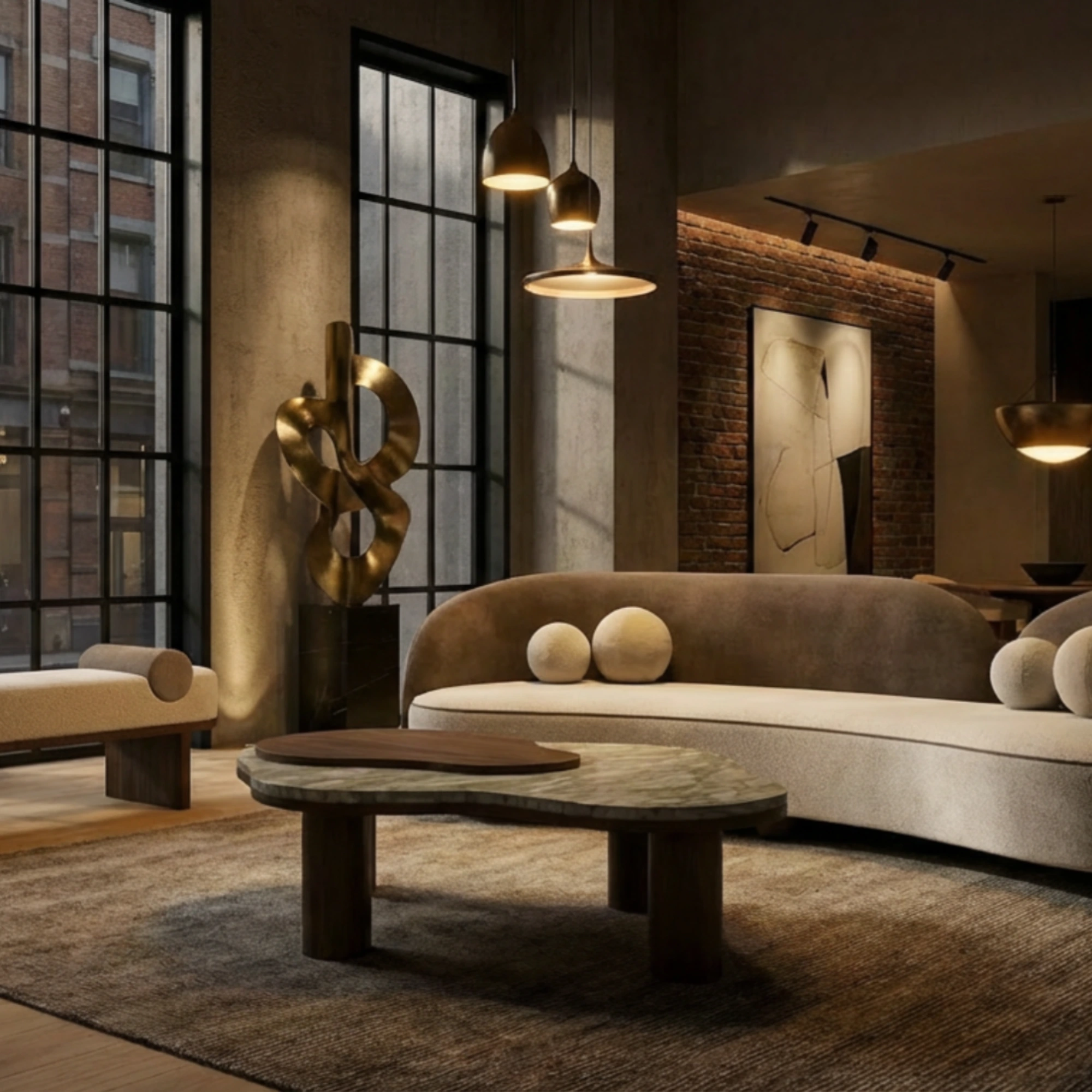 Its fluid silhouette and material interplay make it a standout piece that brings both sophistication and visual balance to modern interiors.