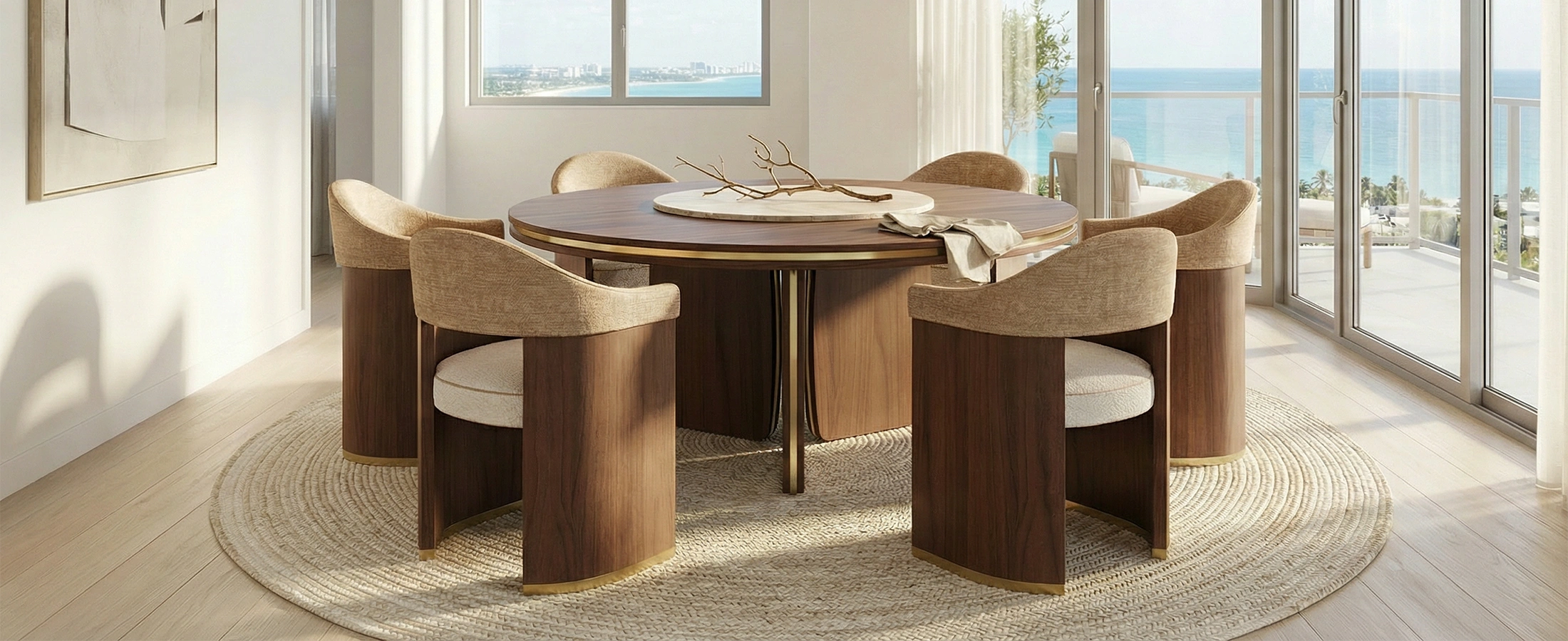 Customize the stone finish and timber tones to suit your palette. Explore available materials on our Samples page to specify the Alba Round Dining Table precisely for residential or hospitality environments.