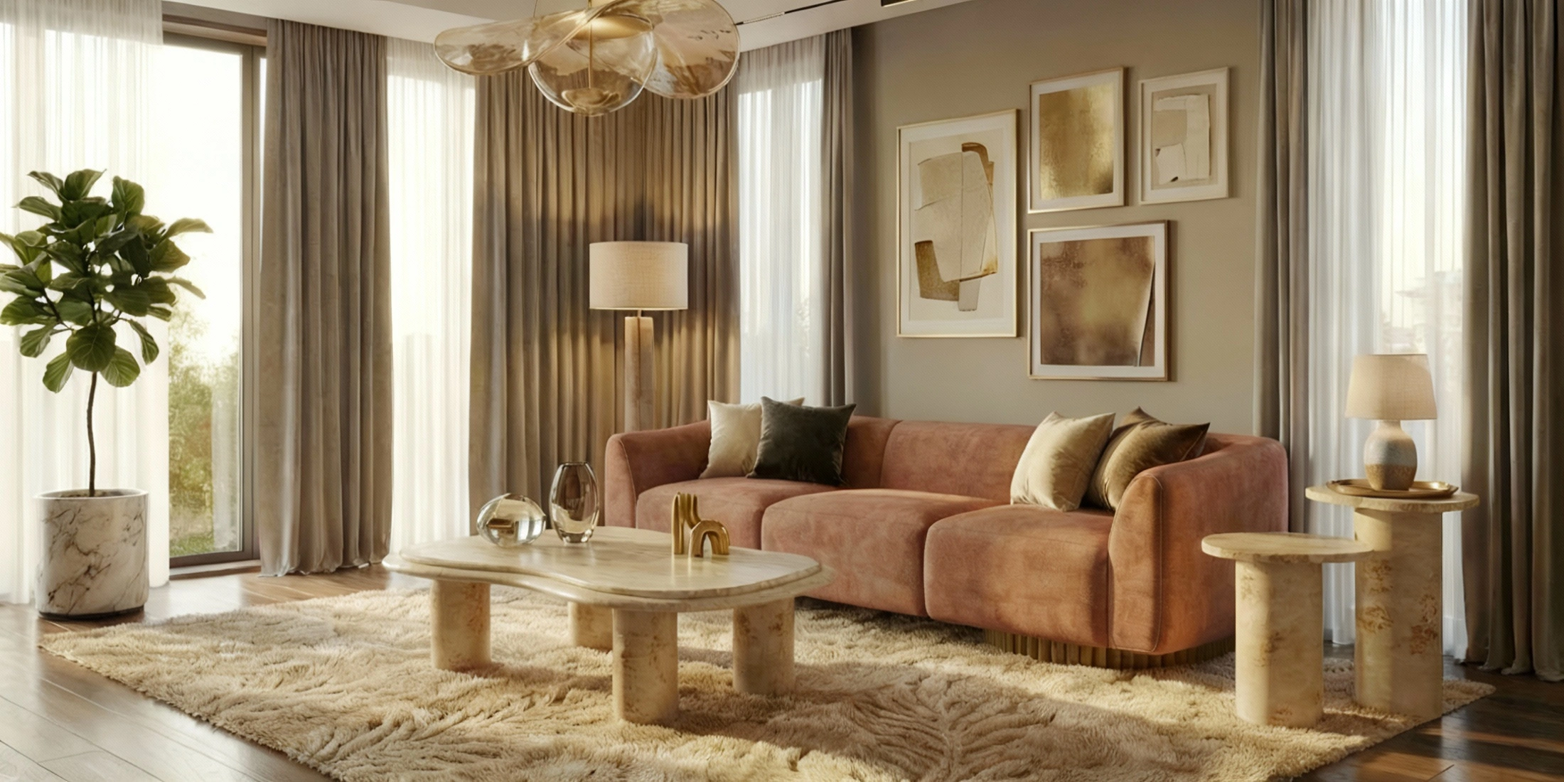 Its scale suits a handcrafted accent table with organic form, offering a grounded surface while remaining visually calm. The piece reads as an elegant statement side table.
