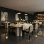 Petra Dining Table is a Light Emperador marble dining table, conceived as a sculptural volume that anchors dining spaces with quiet authority. Its cylindrical base balances form and circulation.