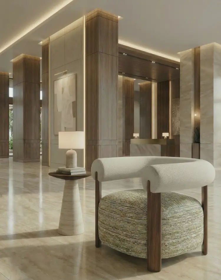 The Lotte Side Table balances rich walnut with a travertine base, offering natural warmth and contrast.