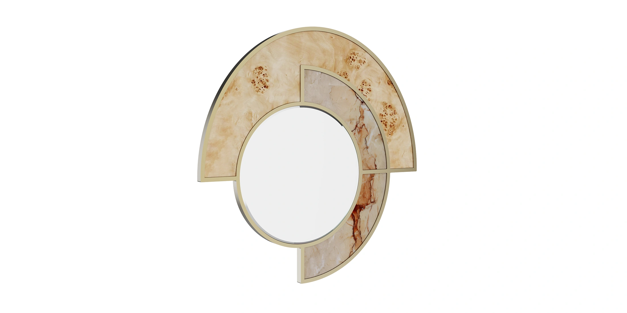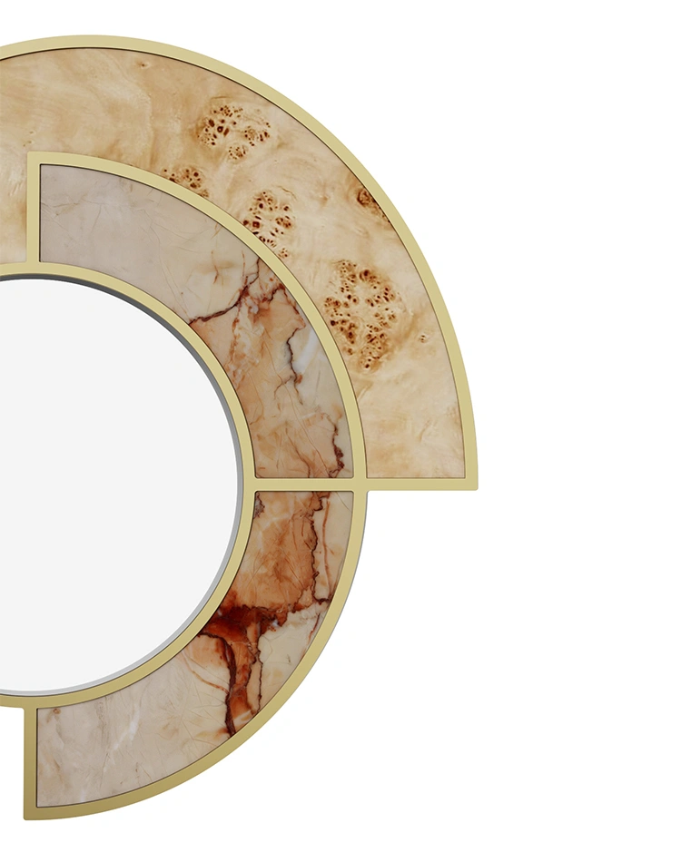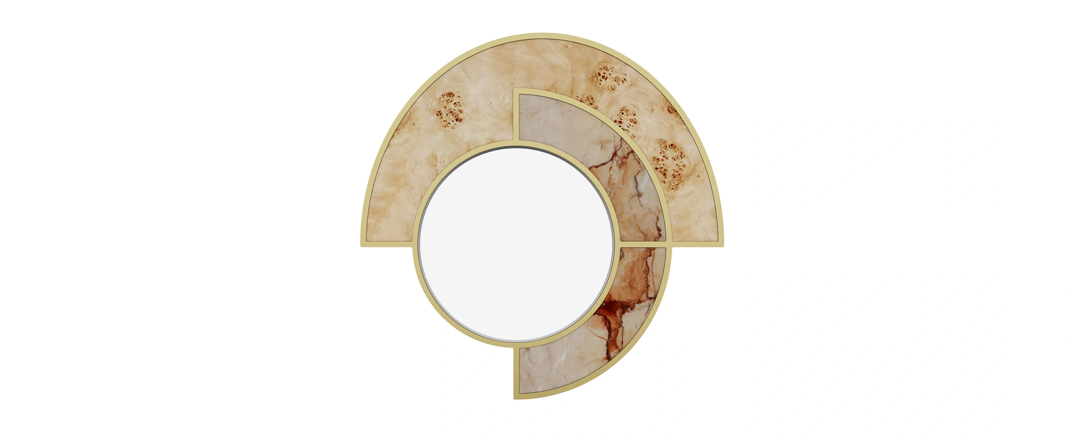 Clear Mirror , Poplar Root , Aegean Rose Marble , Polished Brass |