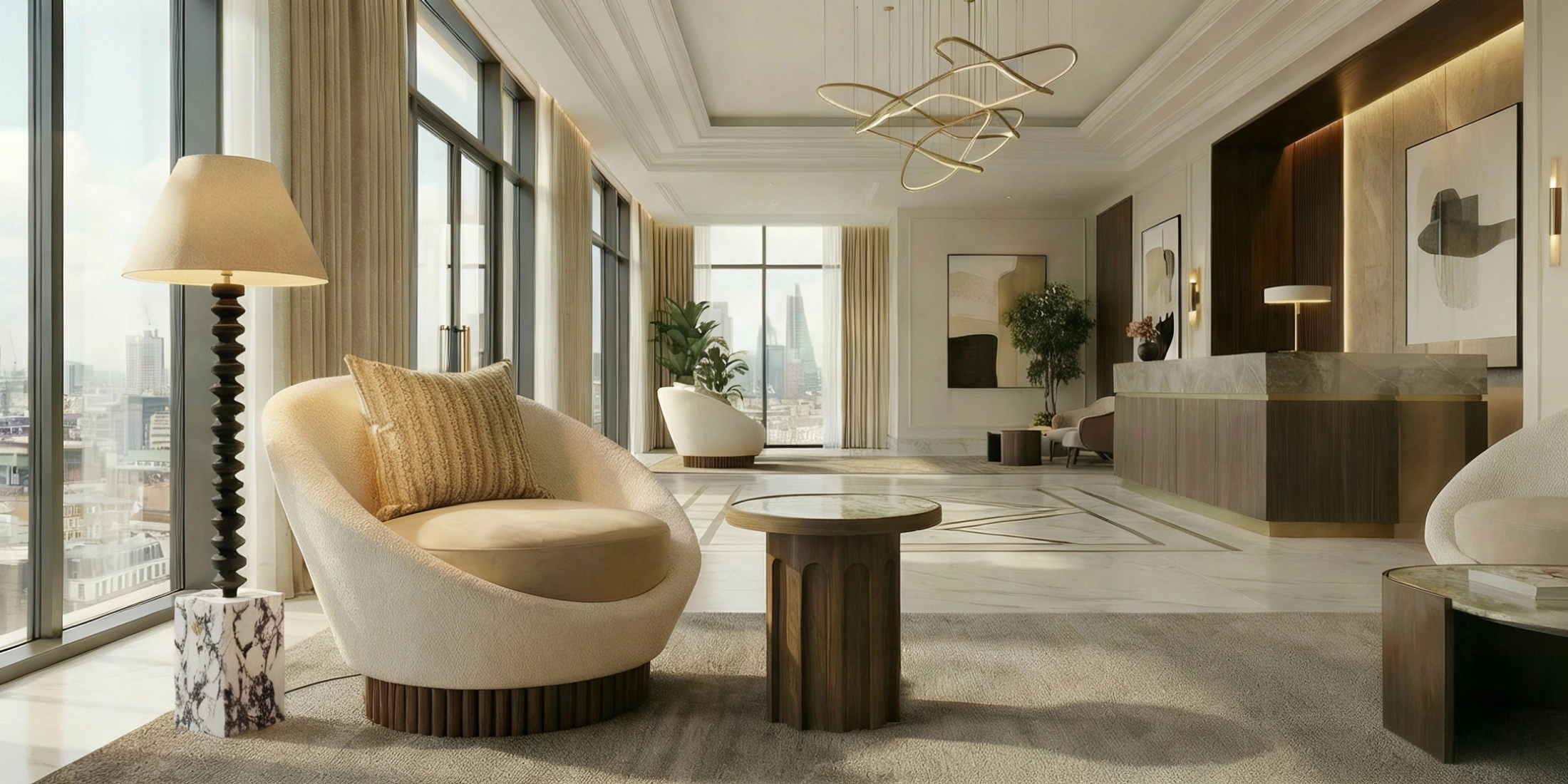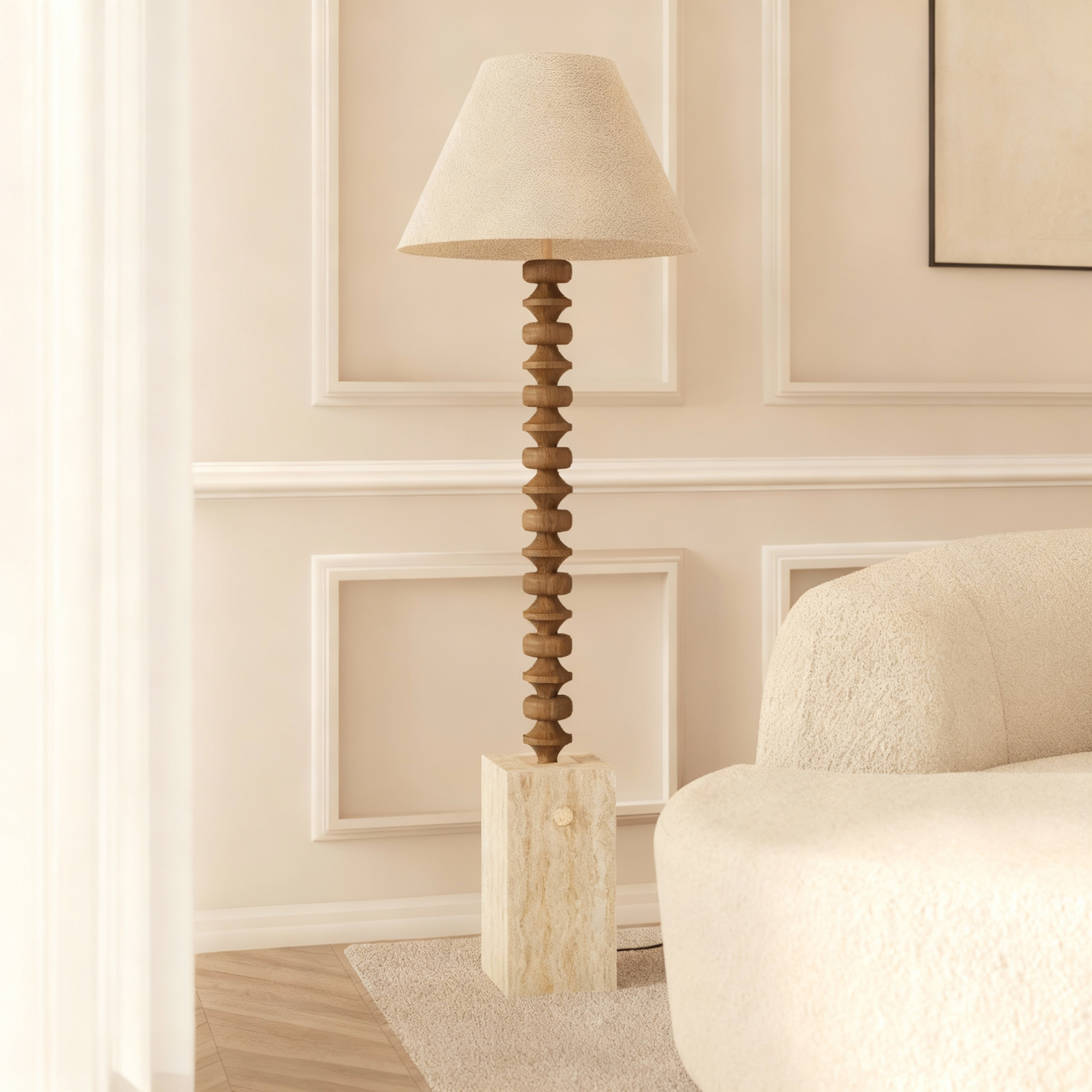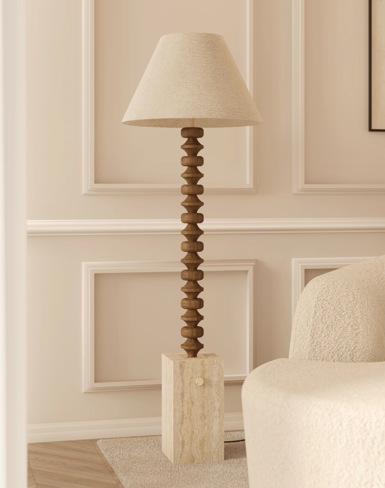 The Francis floor lamp is a bold fusion of sculptural artistry and refined materials, making it a striking addition to any interior.