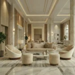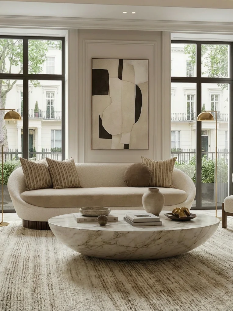 For a cohesive vignette, pair Anki with Roland Side Table. Its marble top with a fluted wood base mirrors Anki’s material language, while the round plan echoes the sofa’s curvature for a serene, textural dialogue.
