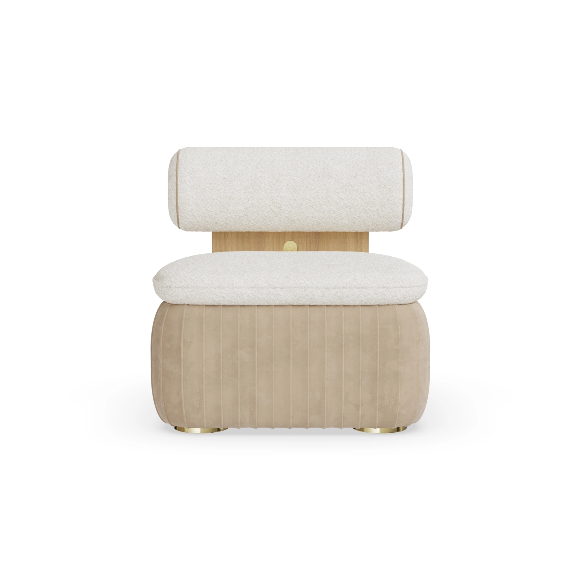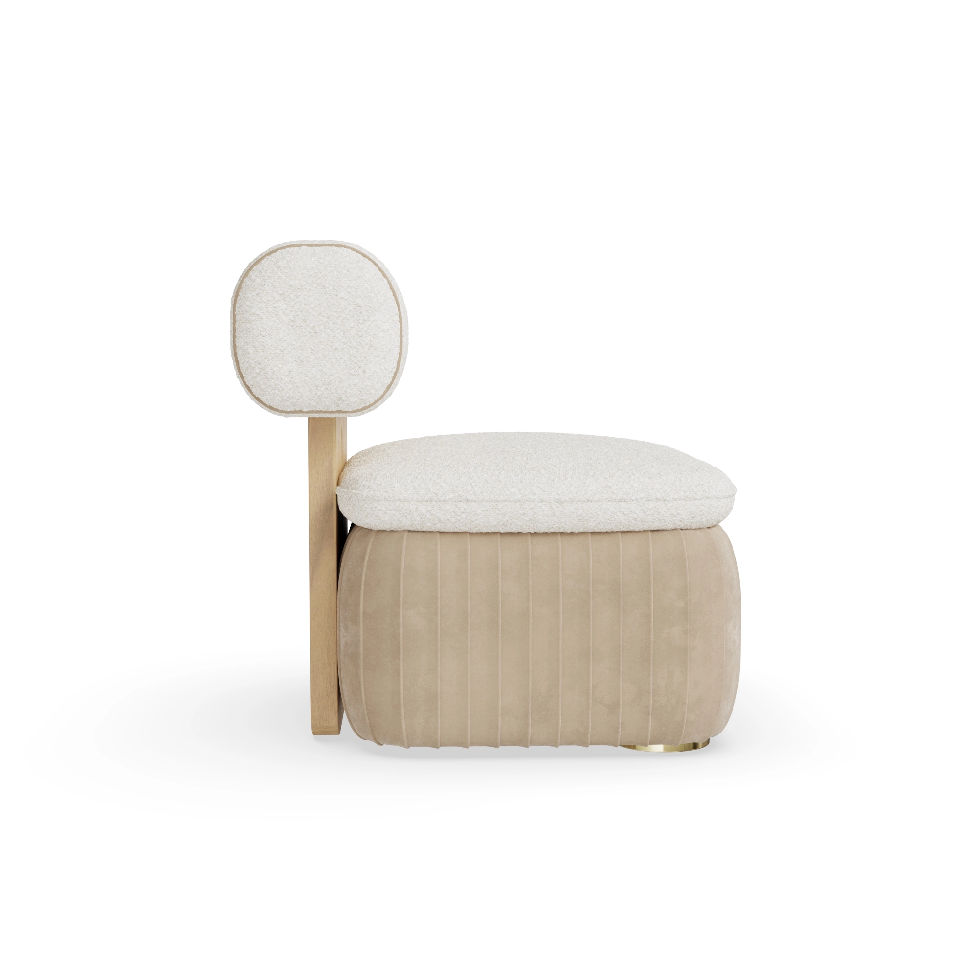 The Galène Armchair is a sculptural expression of texture, softness, and considered proportion. Defined by its generous, rounded seat and cylindrical backrest, the design plays with volume and contrast to create a piece that feels both welcoming and architecturally composed.
