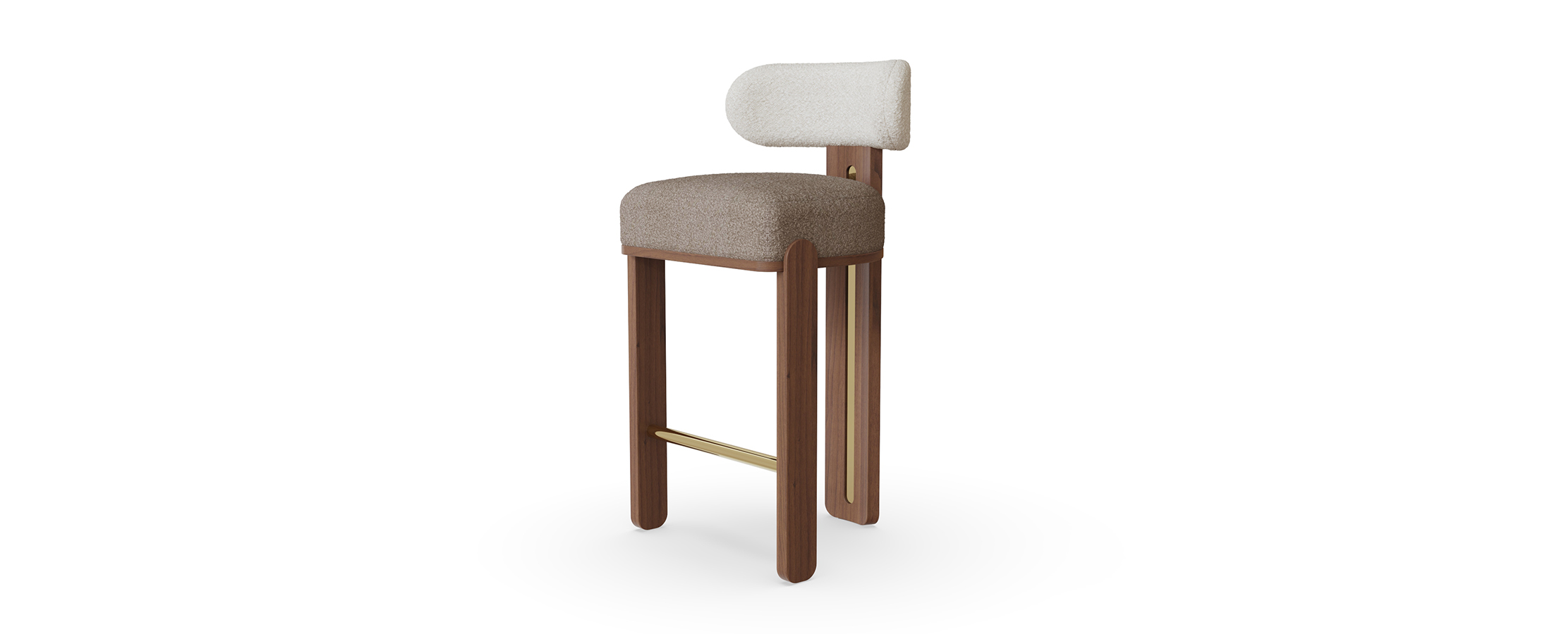 Elegance elevated — the Diane Bar Chair brings soft bouclé, warm walnut, and timeless comfort to any kitchen or bar space.
