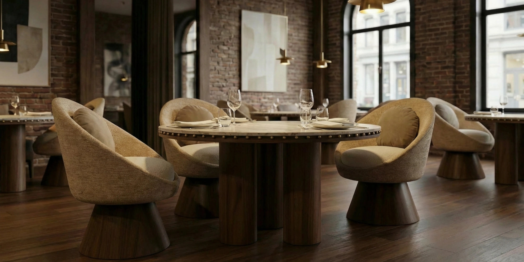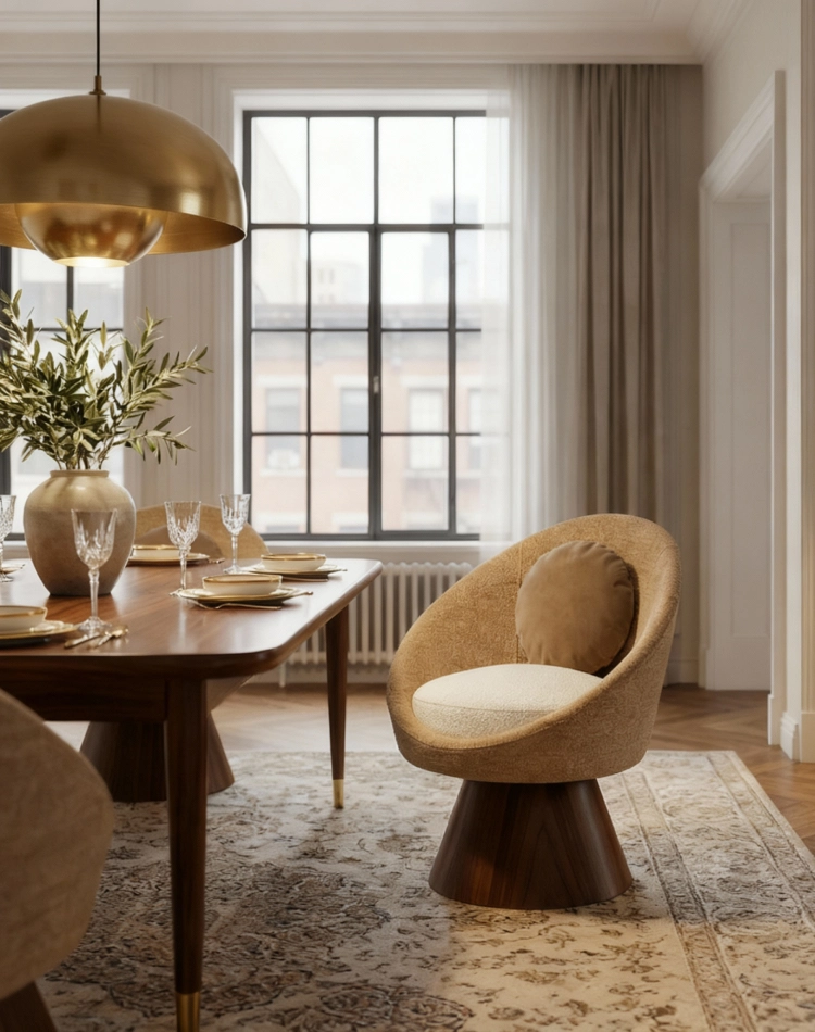 For a cohesive scheme, pair Basqui with Coralie Dining Table to echo its rounded geometry and timber language.