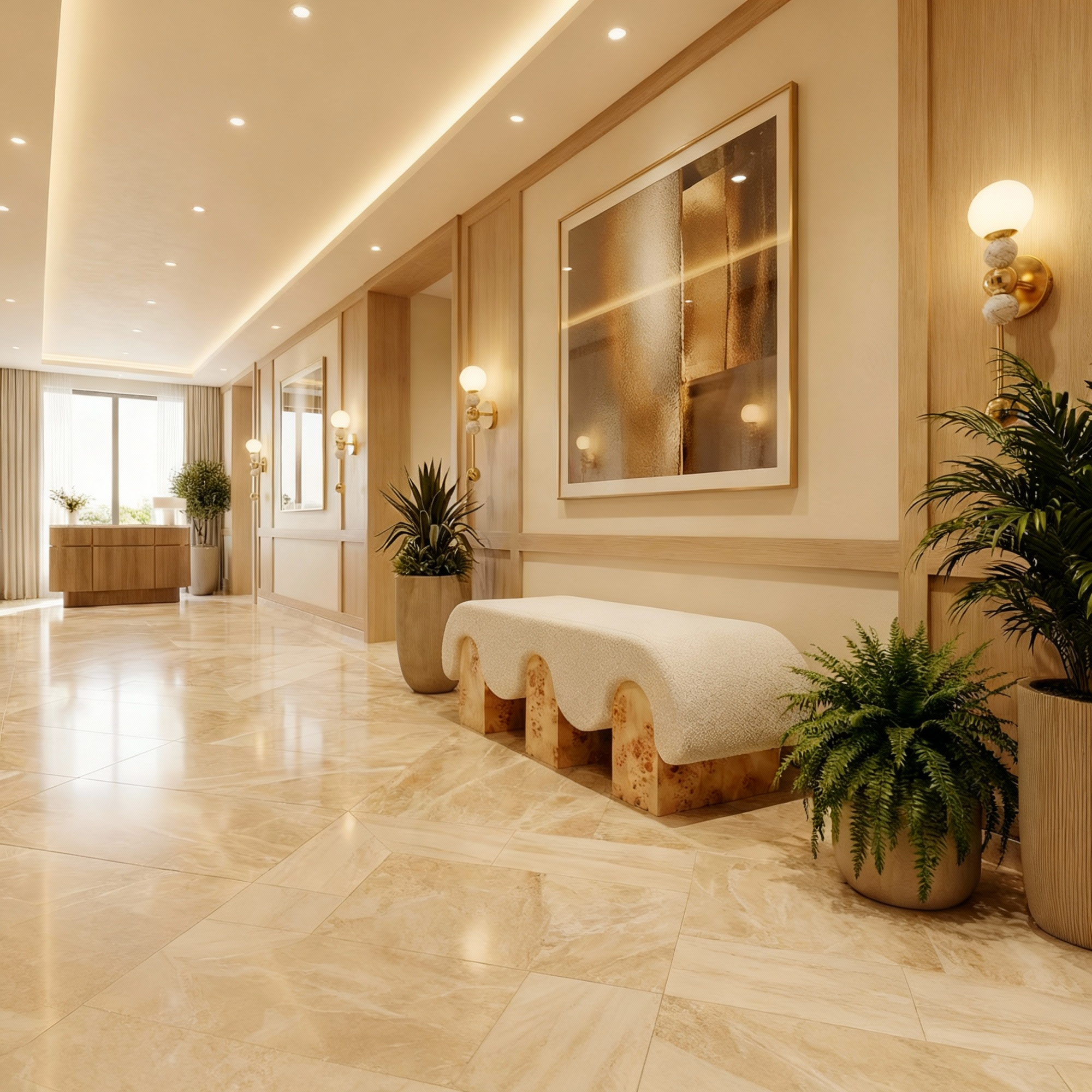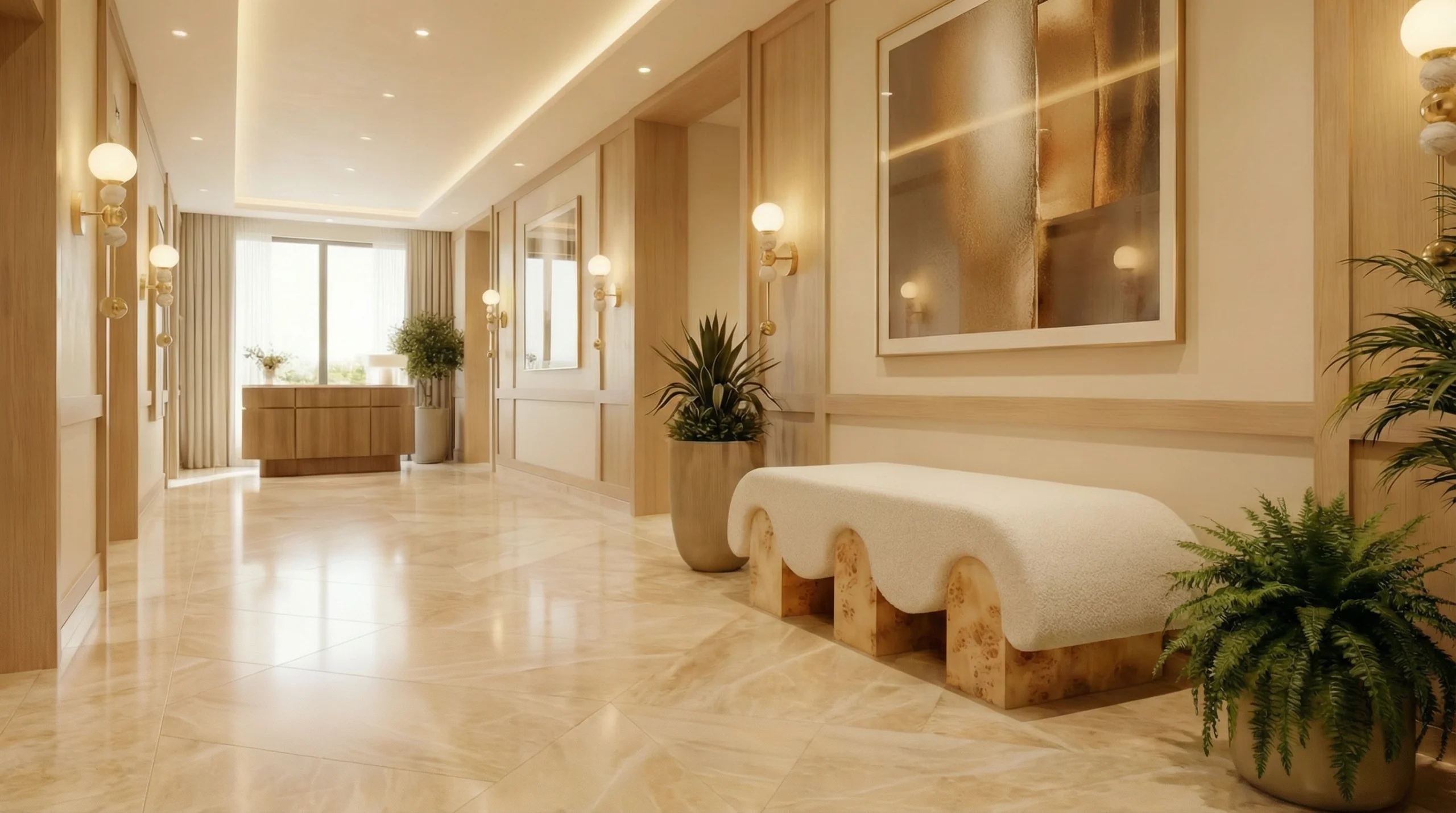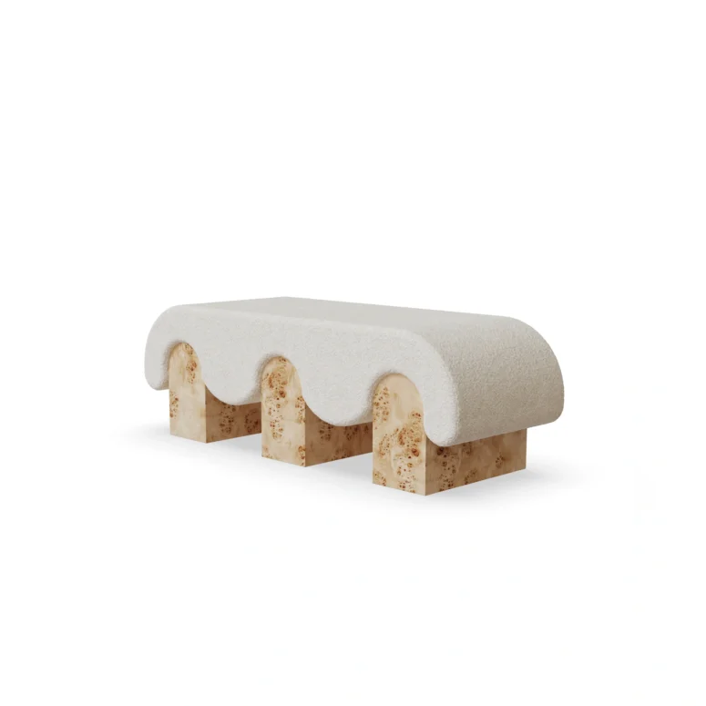 Soft lines, sculptural legs — the Corinne Bench embodies quiet luxury.