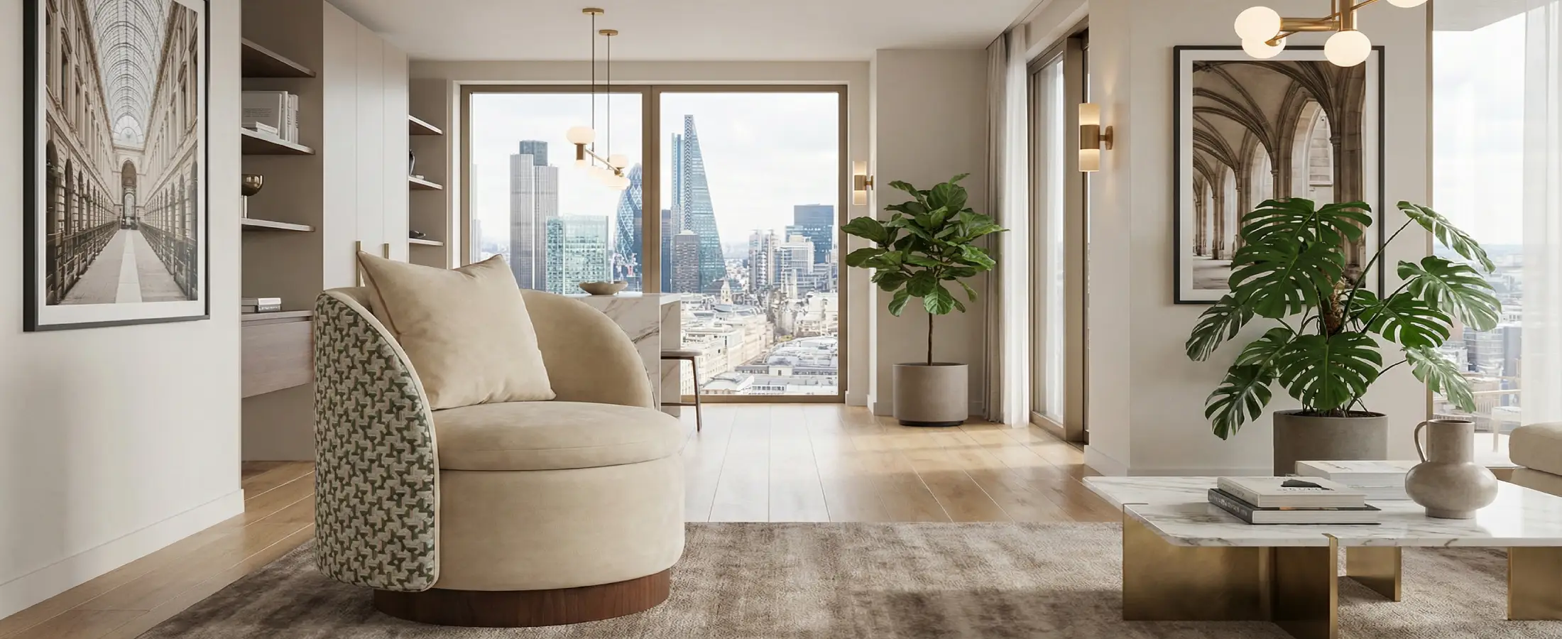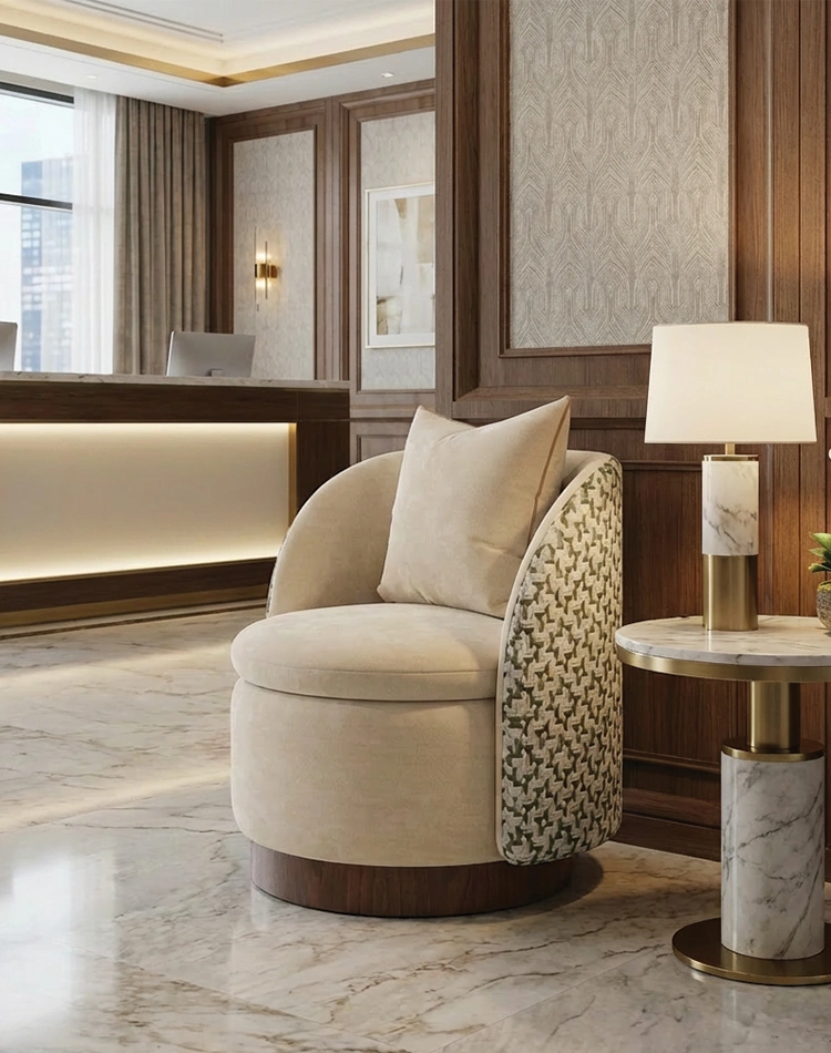 Complete the vignette with Agnes Coffee Table. Its honed travertine top and timber base echo Carrie’s material language, creating a cohesive dialogue of stone and wood in living rooms or suites.