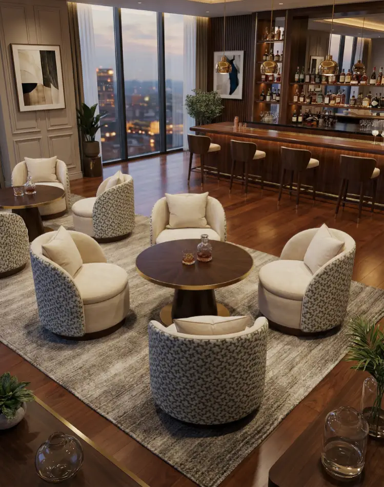 Comfort remains disciplined. The supportive wrap holds posture for conversation, and the compact footprint keeps arrangements balanced, a truly organic modern accent chair that stays visually serene in plan.