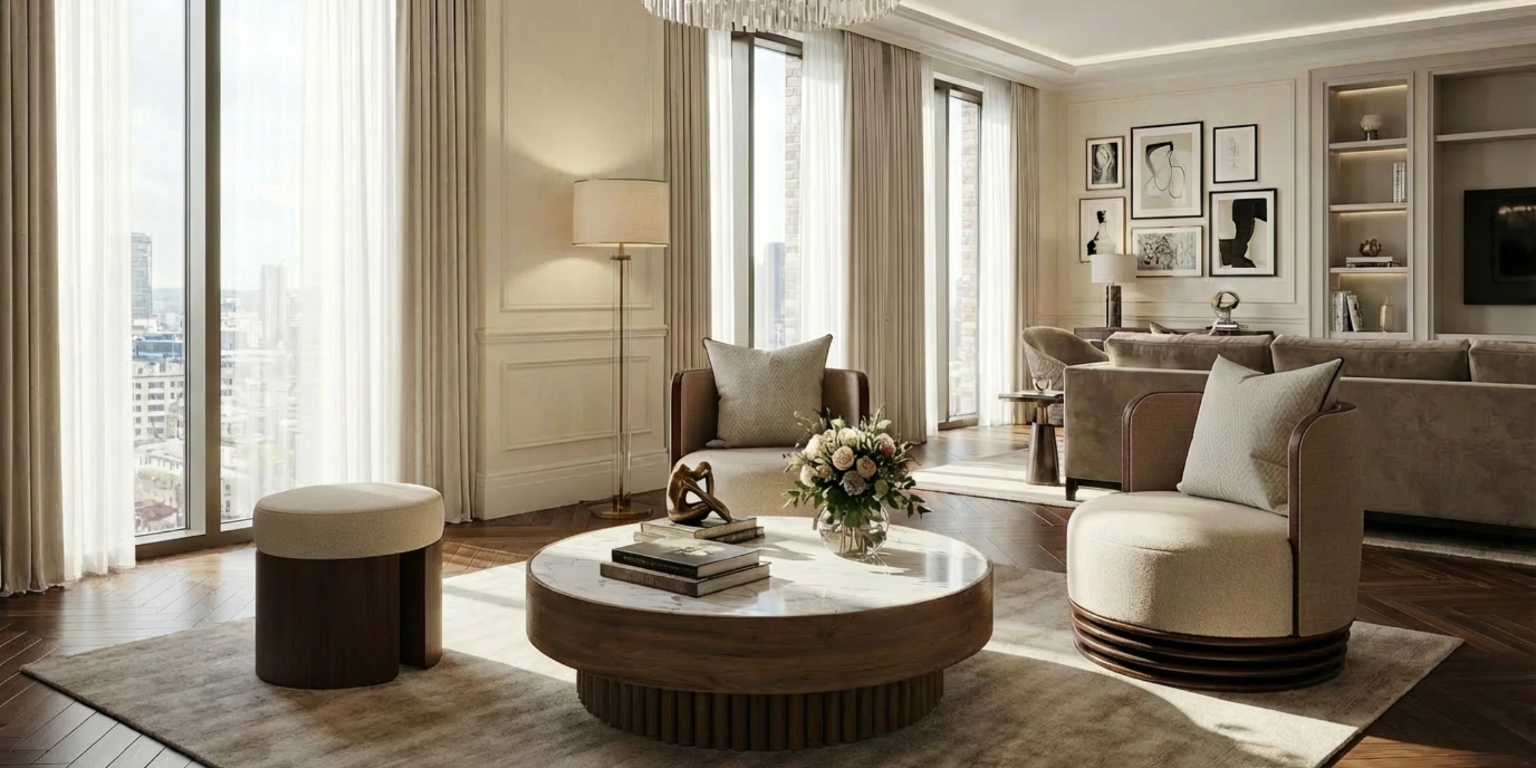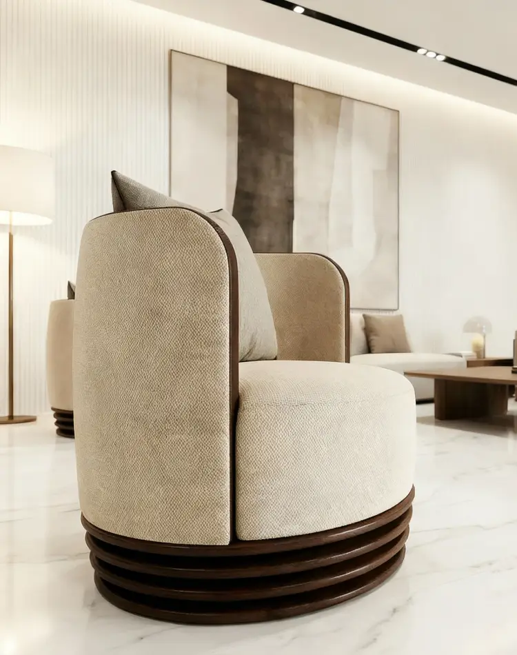 Comfort is layered: The supportive wrap and deep cushion encourage lingering conversation without visual noise, reading as a high-end accent chair that settles easily into refined settings.