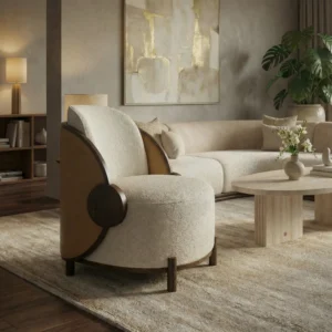 Bouclé , Walnut Matte , Travertine , Aged Brass |
