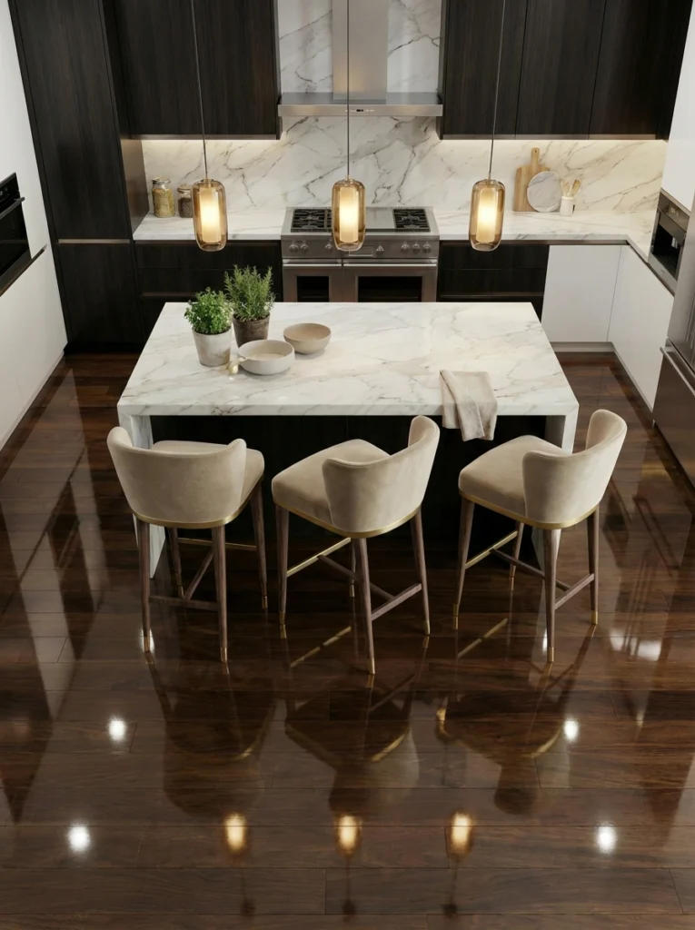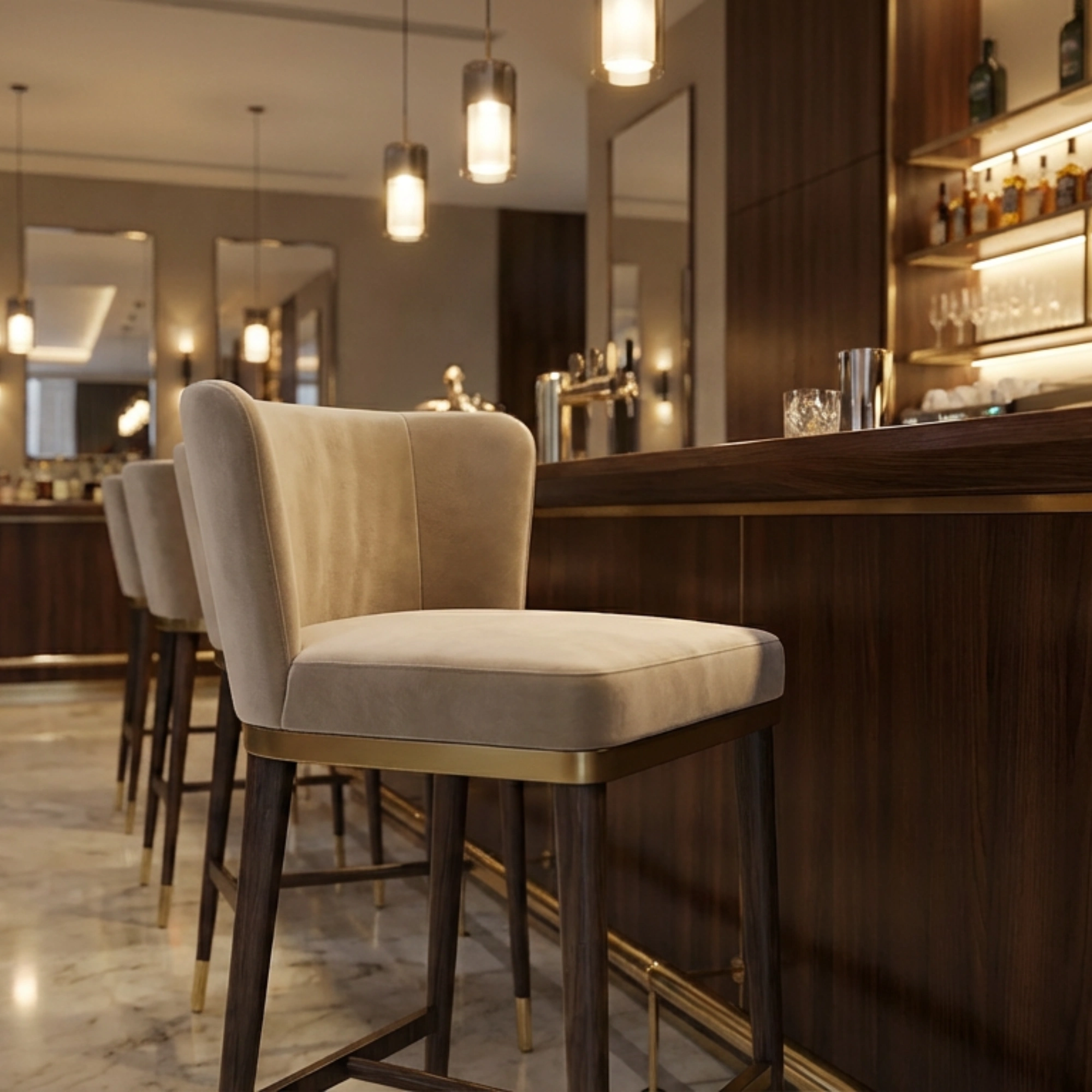 Reading as a modern bar stool with a supportive back, Hazel works as primary seating at a kitchen island or home bar where proportion, comfort, and material tactility matter in equal measure.