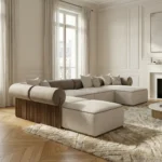 The sofa’s modular design allows for customizable configurations, making it adaptable to any living space.