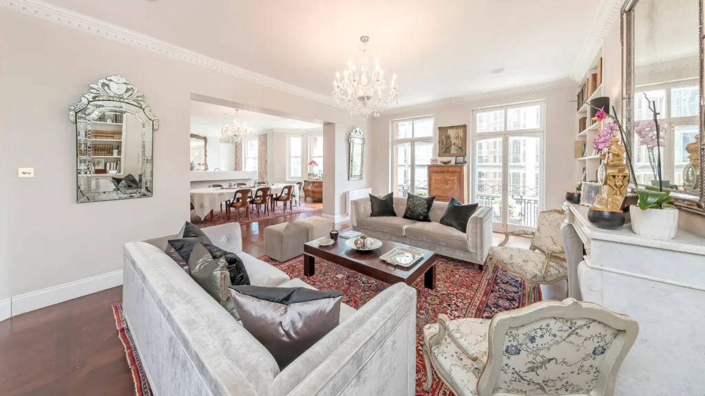 Unlike newly built skyscraper residences, many Mayfair luxury apartments are embedded within listed or historically sensitive buildings. Ceiling heights, cornicing, sash windows, and original fireplaces form an architectural narrative that cannot be ignored.