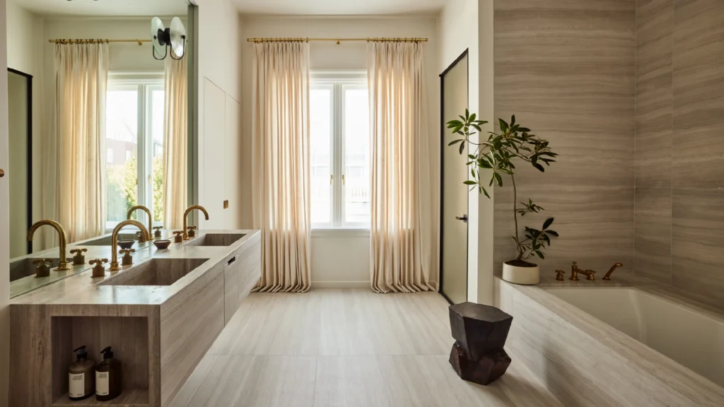 The modern bathroom has evolved into a spa-inspired retreat. Freestanding tubs, oversized rain showers, heated stone floors, and bespoke vanities redefine daily routines.