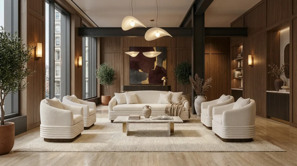 For developers and real estate professionals, bouclé interior design offers a strategic advantage: it photographs beautifully, ages gracefully, and resonates with an international clientele attuned to contemporary design narratives.